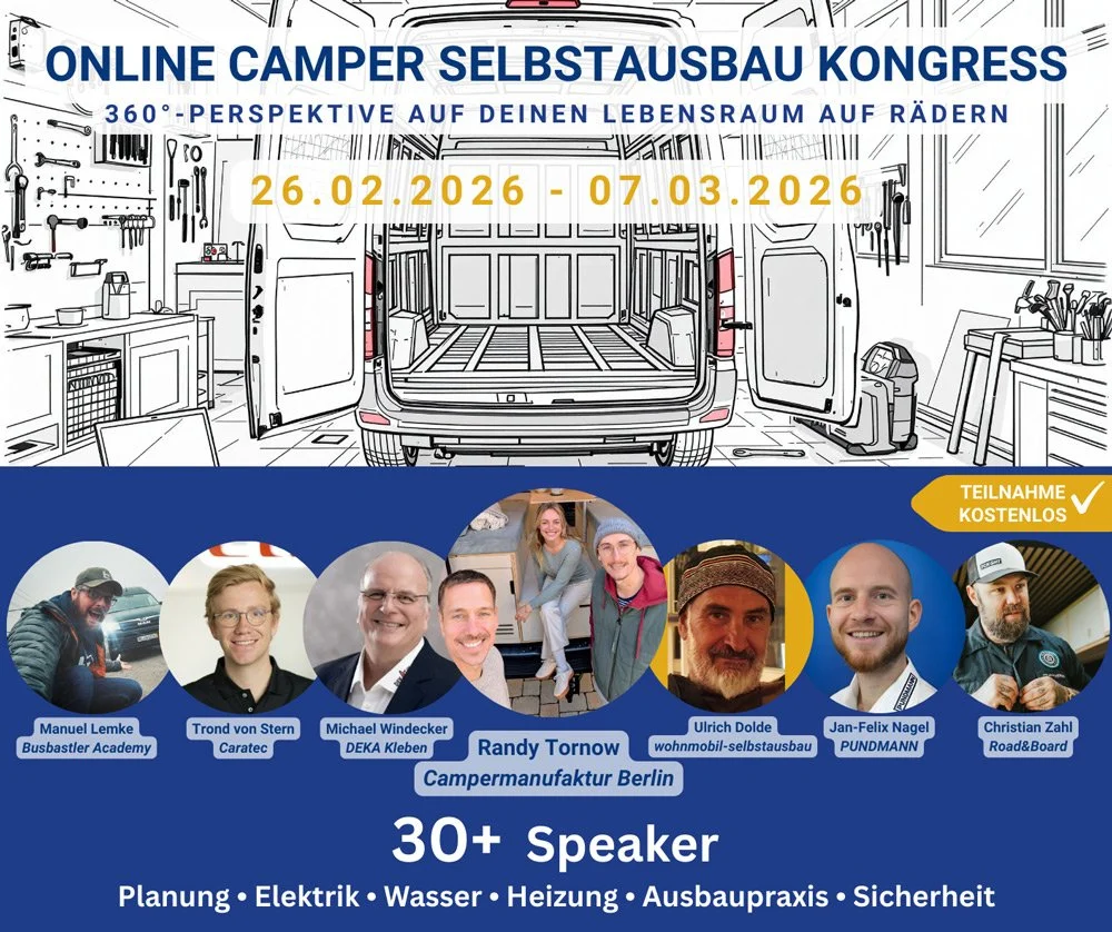 Über 30 echte Experten und erfahrene Camper aus der Branche teilen ihr Wissen zu Themen wie Planung, Sicherheit, Elektrik, Wasser & Heizung. Wir finden es klasse, in dieser Gruppe dabei zu sein, um unserer Community dieses komplexe Projekt näherzubringen.