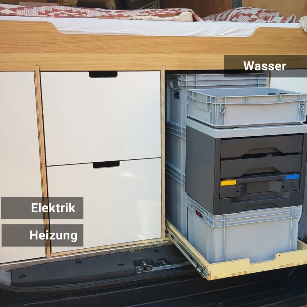 Für Selbstausbauer:innen bedeutet das: Du arbeitest mit Lösungen, die bereits durchdacht, praxiserprobt und aufeinander abgestimmt sind – statt Technik, Möbel und Stauraum selbst neu erfinden zu müssen.